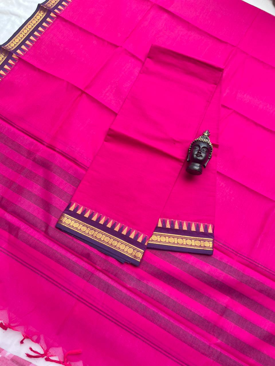 Pure Cotton Handloom Top & Dupatta Set | Pink Dress Material