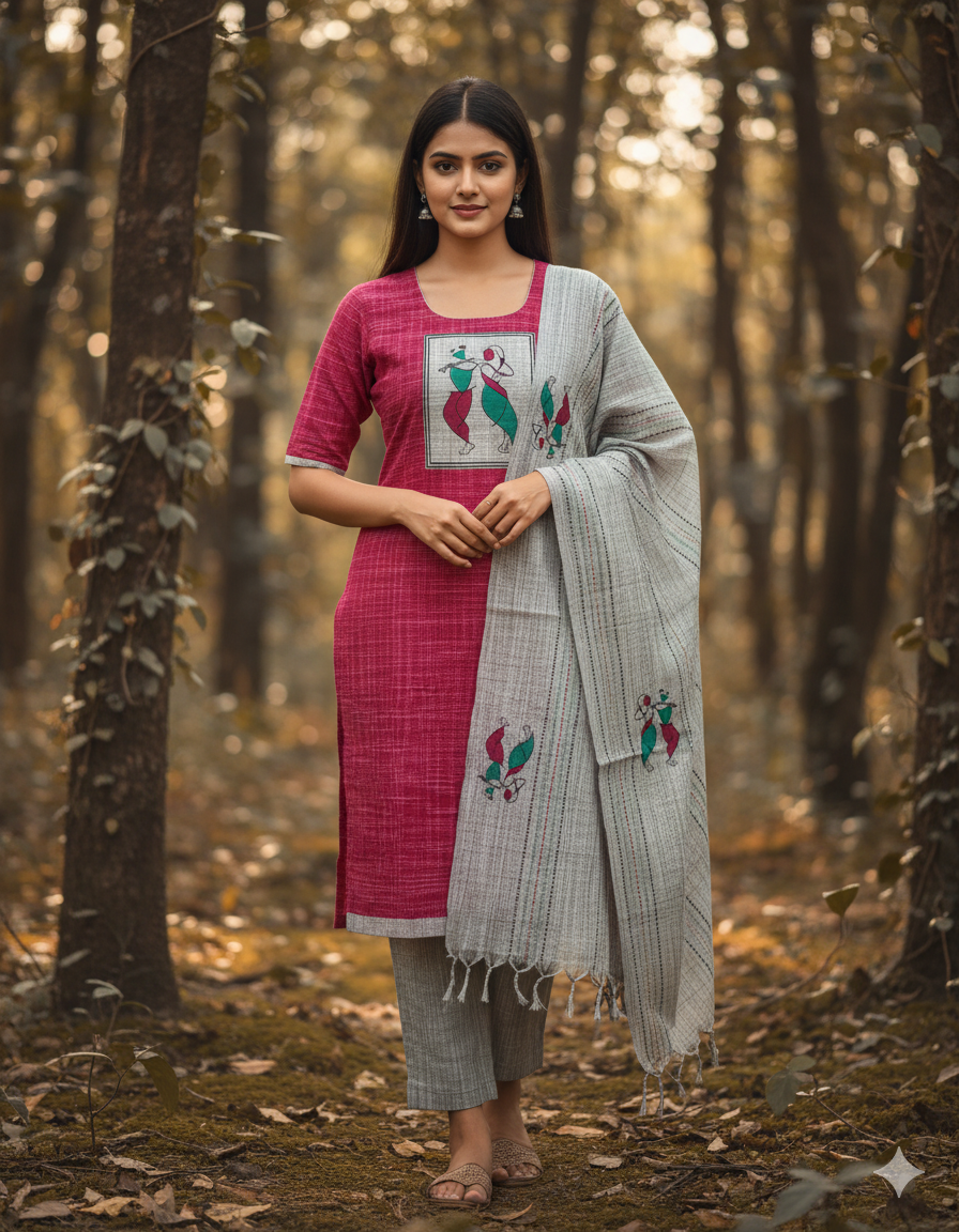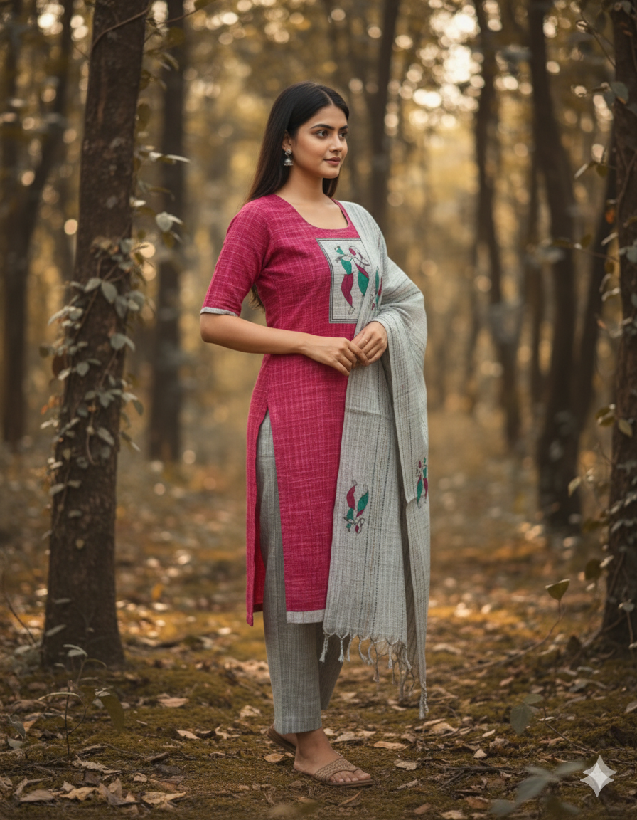 Radha Krishna Cotton Readymade Kurti for Women – Pink Straight Cut with Full-Length Lining