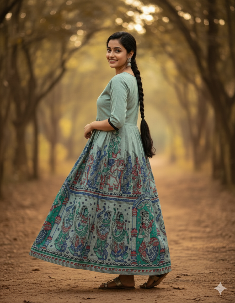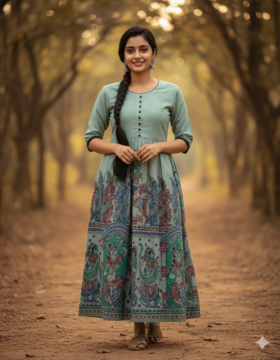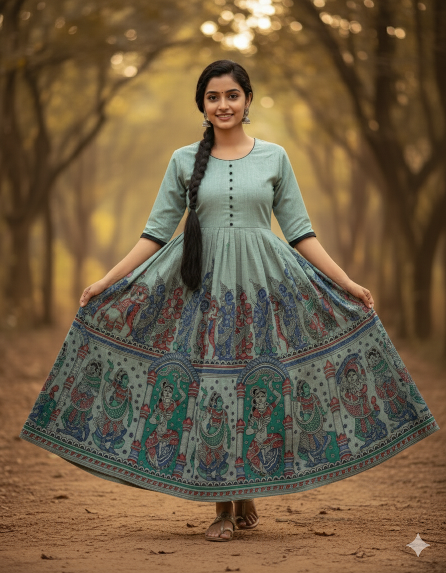 Ramayanam Cotton Frock Pastel Sage Green – Premium Ethnic Wear for Women & Girls
