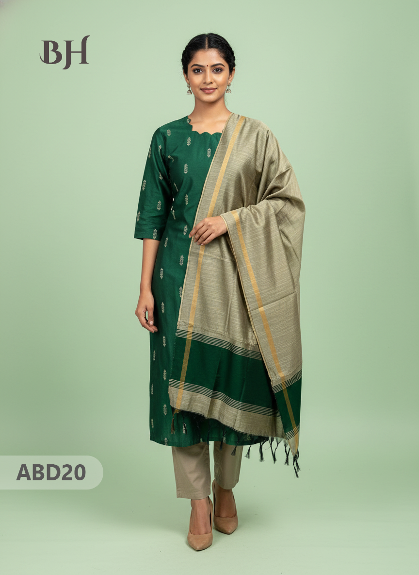 Keywords: Raw Silk Kurti Set, 3pc Kurti Set with Dupatta and Bottom, Bhavana Originals, Premium Raw Silk Dress, Full-Length Lined Kurti Set.