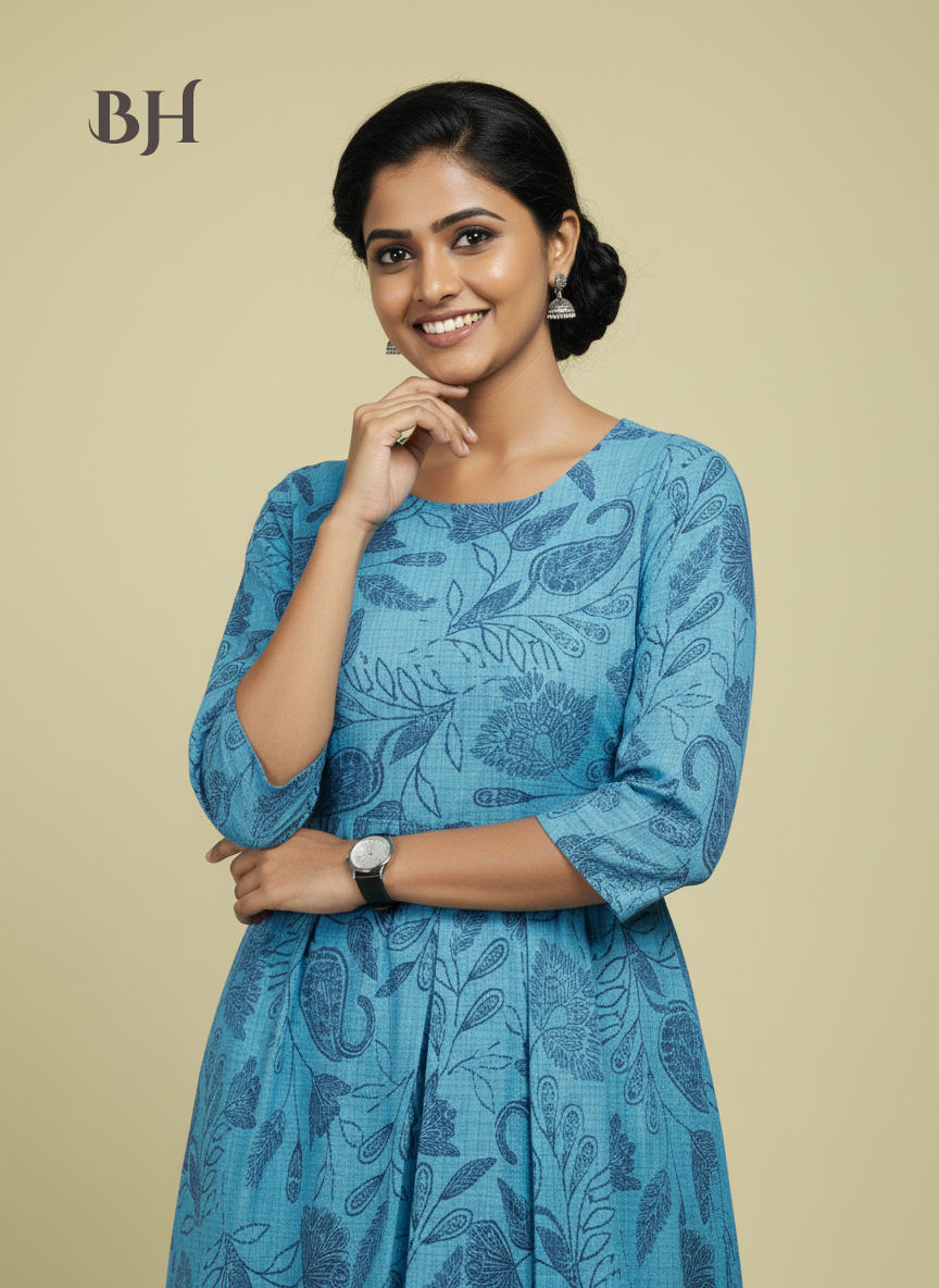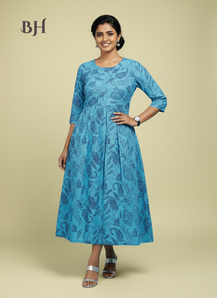 Sky Blue Cotton Frock for Women | Comfortable Daily Wear Dress