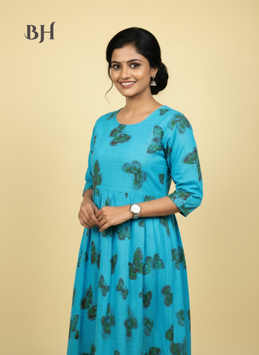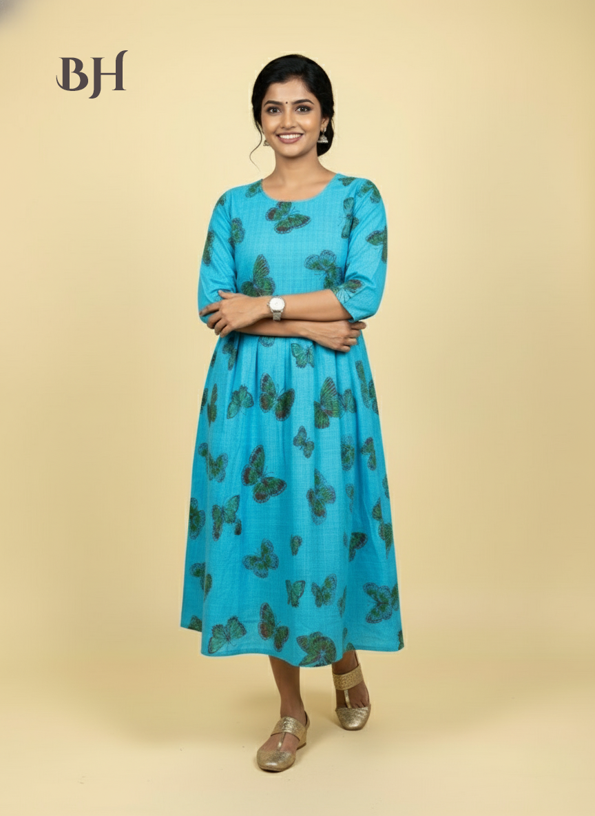 Sky Blue Cotton Frock for Women | Comfortable Daily Wear Dress