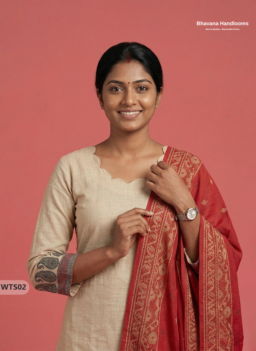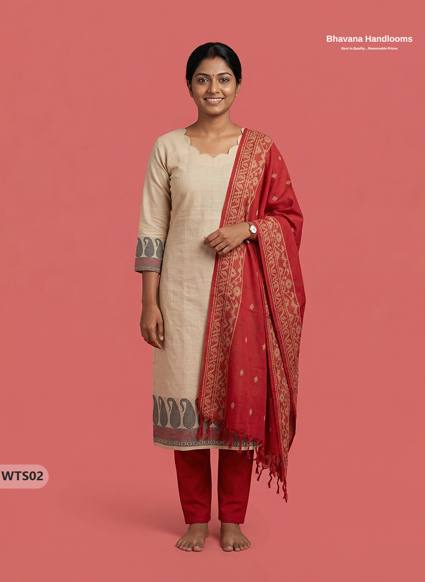 Stylish Handloom Jacquard 3PC Kurti Set with Printed Dupatta & Half White Kurti