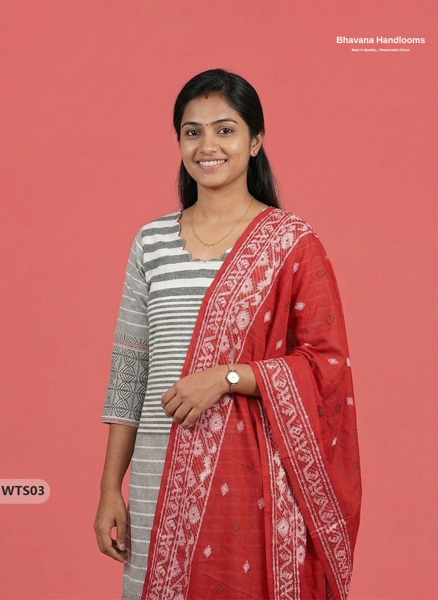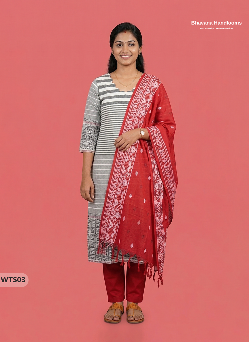 Stylish Handloom Jacquard 3PC Kurti Set with Printed Dupatta & White Kurti