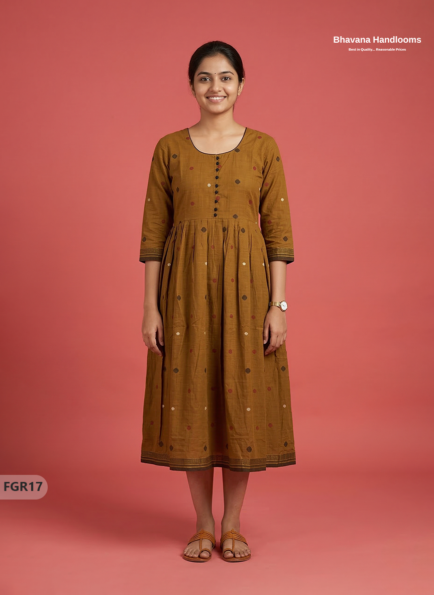 Product form Summer Special Premium Cotton Handloom Frock with Woven Design | Chocolate Colour SKU: FGR17 Rs. 699.00 1 in stock Delivered within 3-6 Working Days Size Size chart XL 2XL 3XL Quantity Add to cart This item is a deferred, subscription, or recurring purchase. By continuing, I agree to the cancellation policy and authorize you to charge my payment method at the prices, frequency and dates listed on this page until my order is fulfilled or I cancel, if permitted. Women's Day Special When will it arrive? Dispatch 24 Hours Transit 3-5 Days Expected Delivery Calculating... Trusted Partners ✓ ✓ Share WhatsApp Deel Messenger Email Share