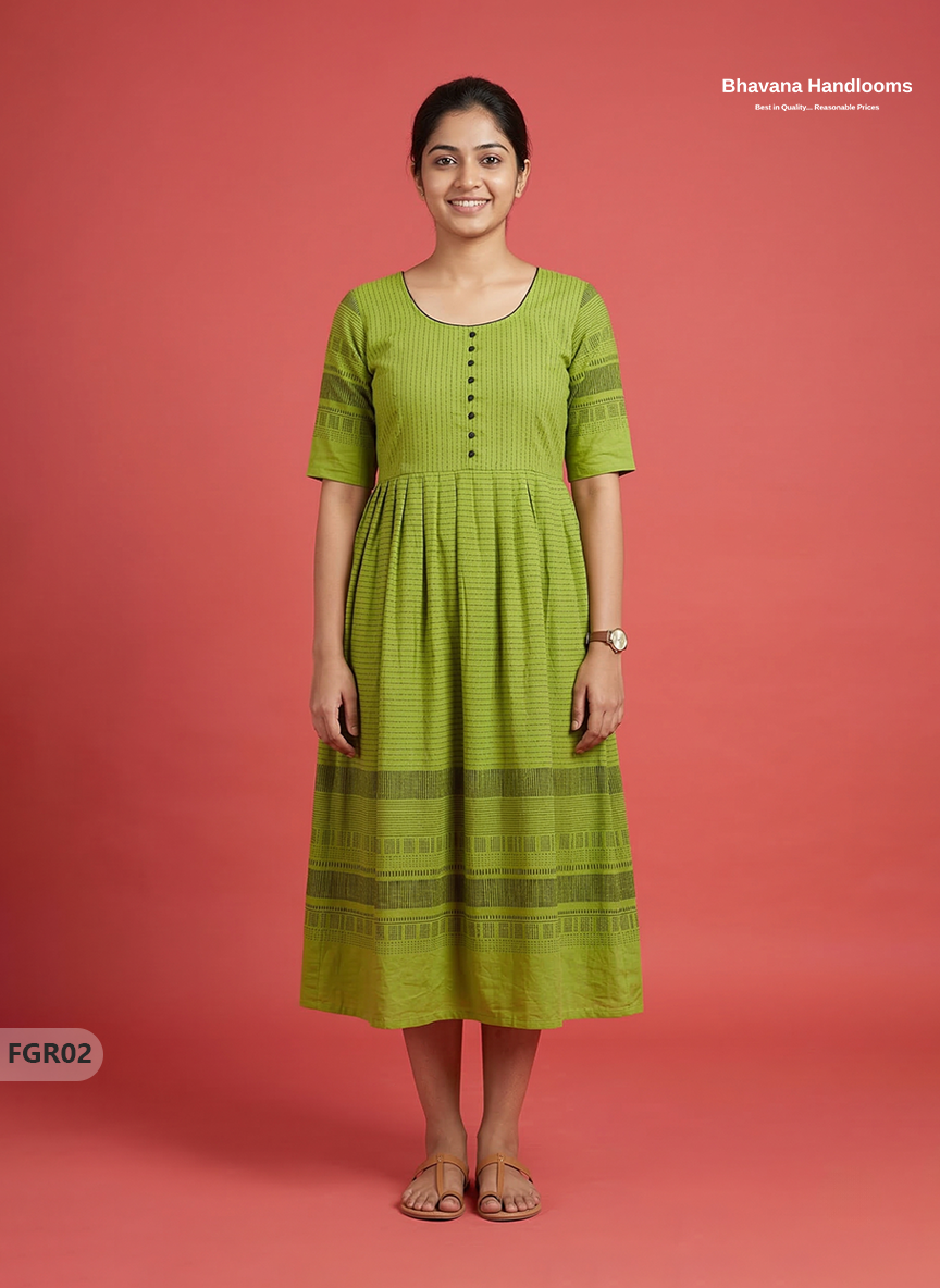 Product form Summer Special Premium Cotton Handloom Frock with Woven Design | Parrot Green Colour SKU: FGR02 Rs. 699.00 5 in stock Delivered within 3-6 Working Days Size Size chart XL 2XL 3XL Quantity Add to cart This item is a deferred, subscription, or recurring purchase. By continuing, I agree to the cancellation policy and authorize you to charge my payment method at the prices, frequency and dates listed on this page until my order is fulfilled or I cancel, if permitted. Women's Day Special When will it arrive? Dispatch 24 Hours Transit 3-5 Days Expected Delivery Calculating... Trusted Partners ✓ ✓ Share WhatsApp Deel Messenger Email Share