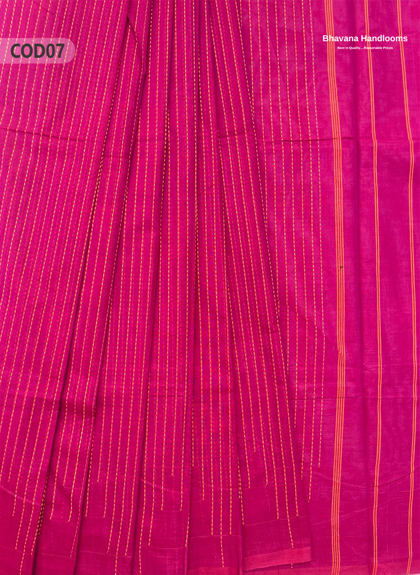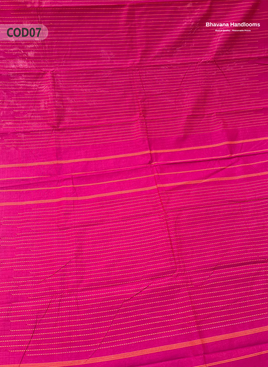 Traditional Coimbatore Handloom Saree – Thread Woven, Small Border, Dark Pink colour