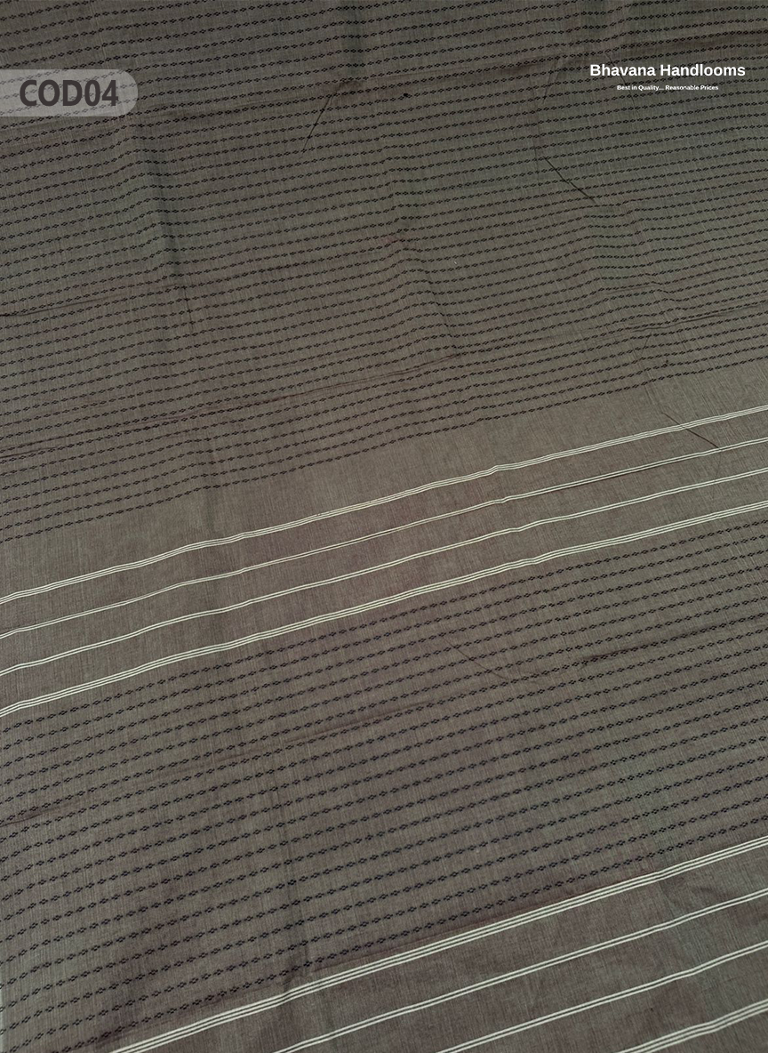 Traditional Coimbatore Handloom Saree – Thread Woven, Small Border, Grey