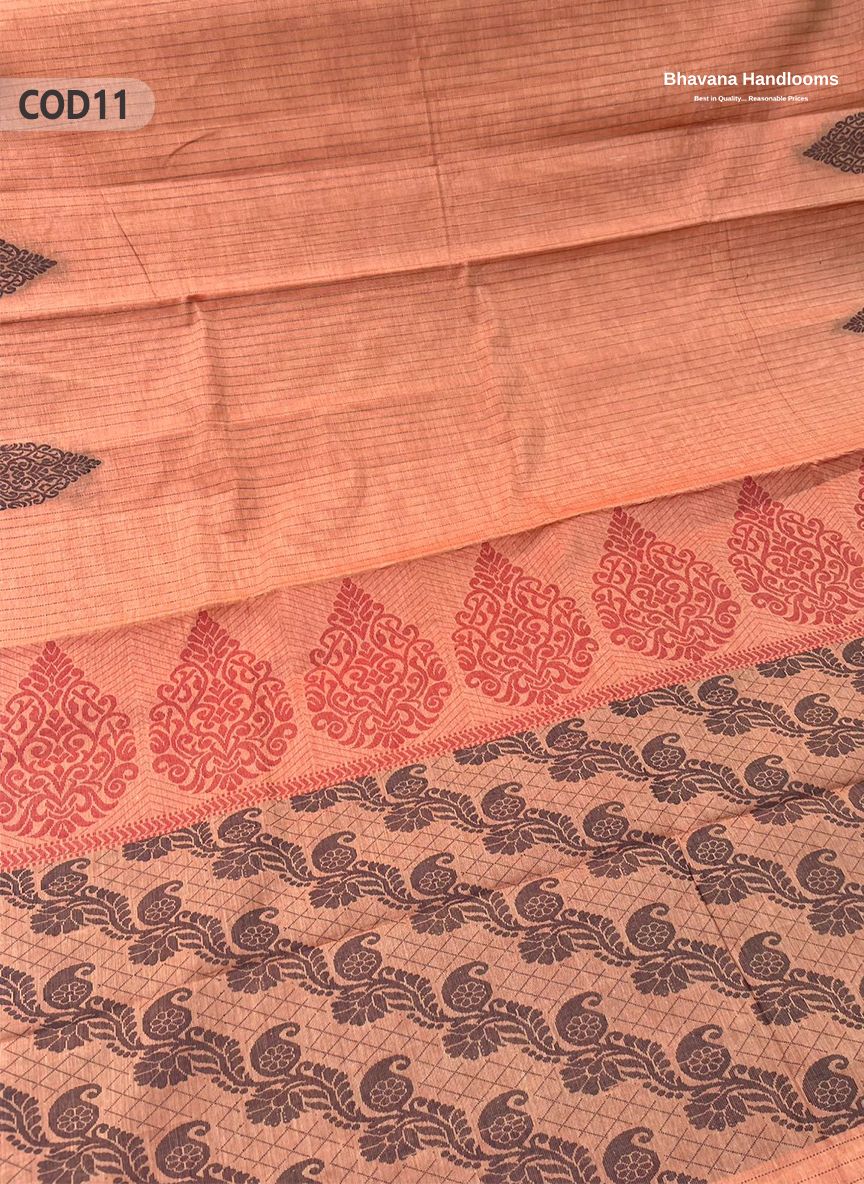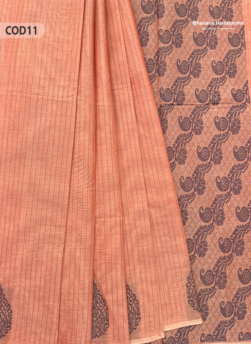 Traditional Coimbatore Handloom Saree – Thread Woven, Small Border, Pale Copper colour