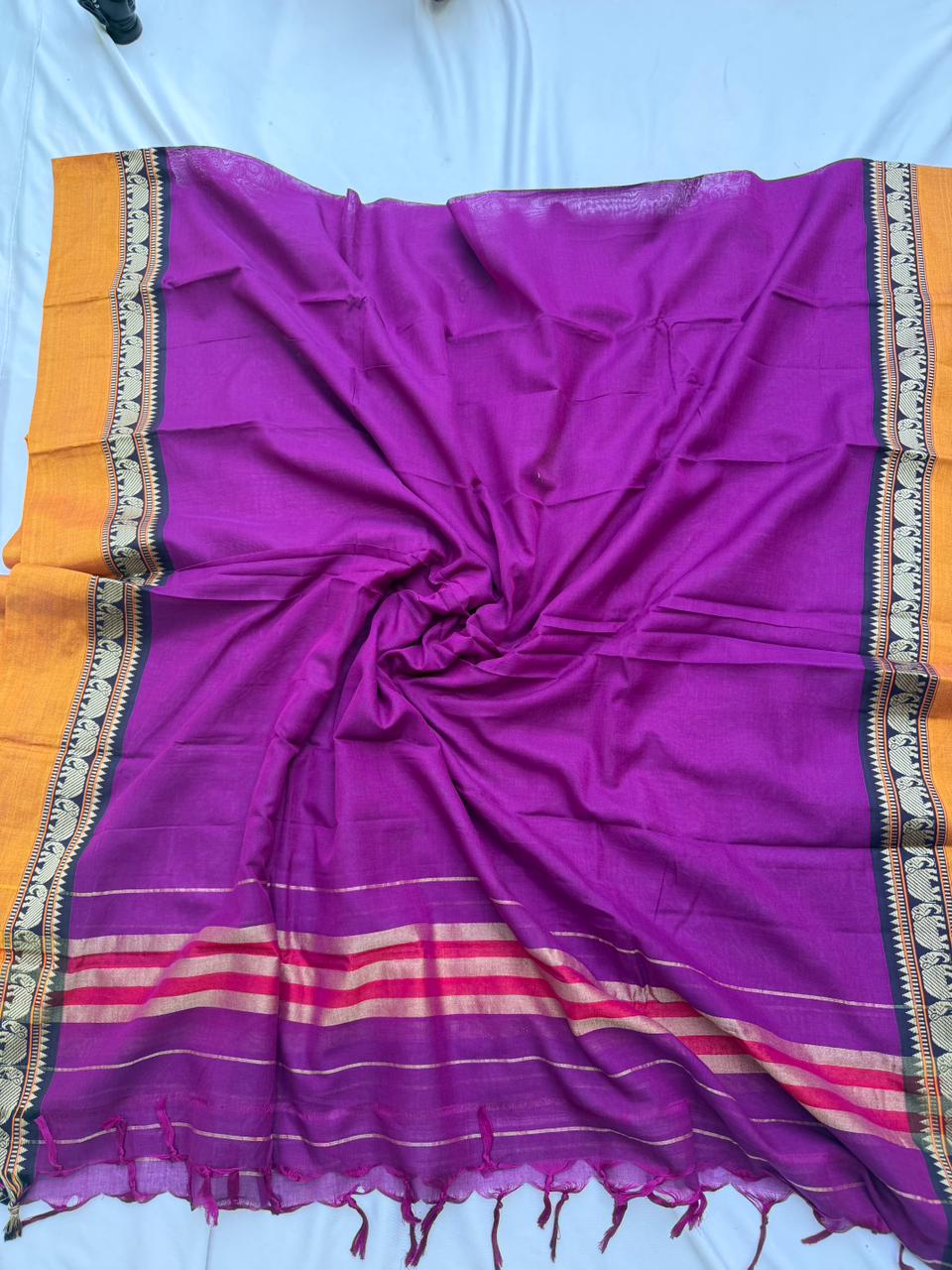 Traditional wear Narayanpet Mercerised cotton dress material with Purple colour