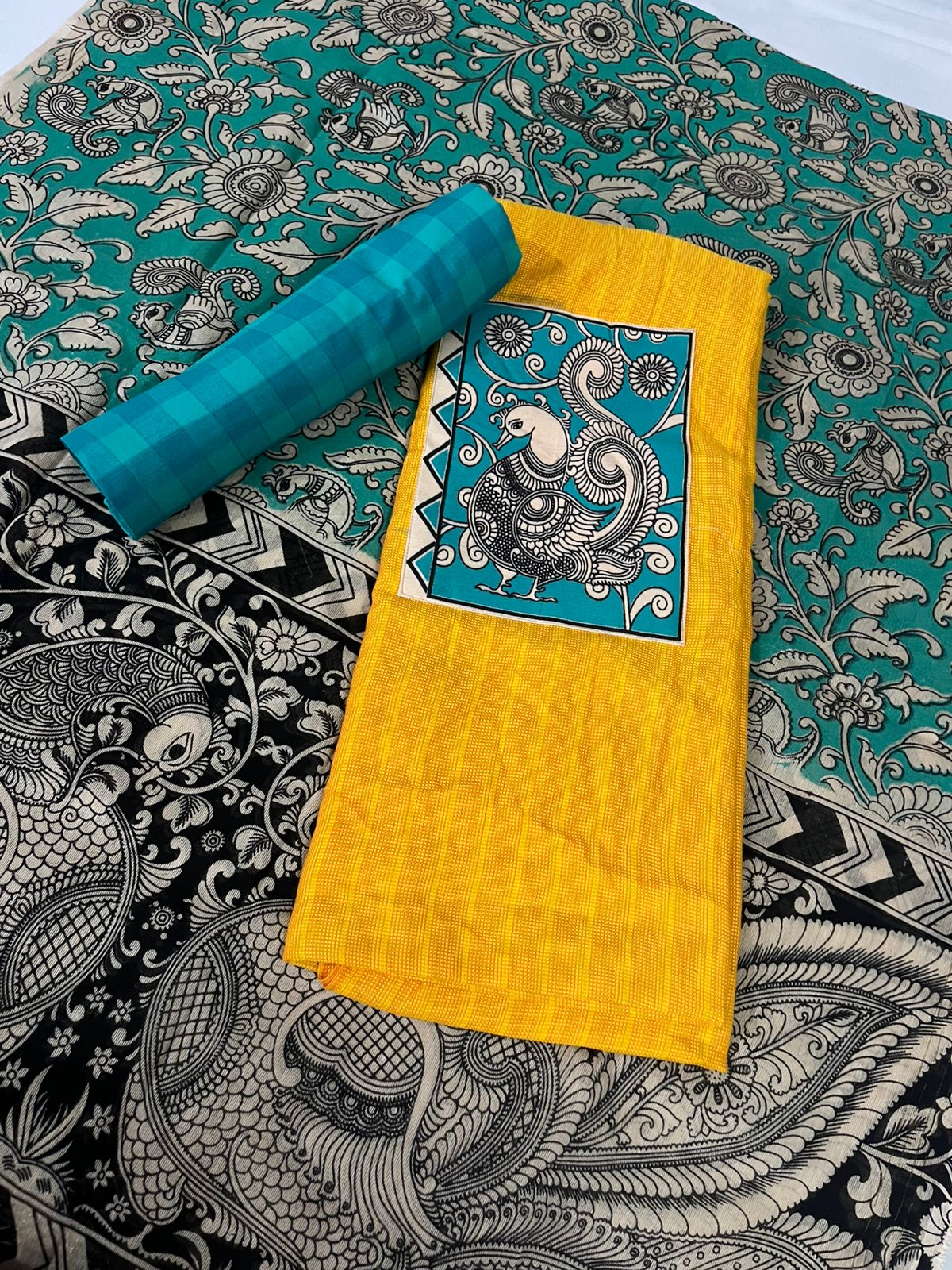 Product form Dress Materials Yellow Kalamkari Cotton 3 Piece Suit Material Set | Unstitched Top Bottom Dupatta SKU: NCD27 Rs. 660.00 3 in stock Delivered within 3-6 Working Days Quantity Add to cart Need help? WhatsApp assistance › Women's Day Special When will it arrive? Dispatch 24 Hours Transit 3-5 Days Expected Delivery Calculating... Trusted Partners ✓ ✓ Share WhatsApp Deel Messenger Email Share